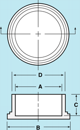 | N.° de artículo | Según el tamaño nominal de la rosca de la tapa | Dim A (pulg.) | Dim B (pulg.) | Dim C (pulg.) | Dim D (pulg.) | |