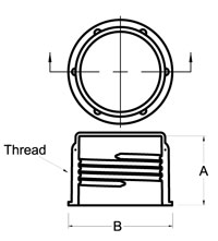 | N.° de artículo | Según el tamaño de la rosca métrica de la tapa | Dim A (pulg.) | Dim B (pulg.) | |