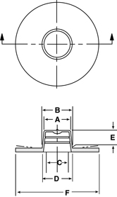 | N.° de artículo | Dim A (pulg.) | Dim B (pulg.) | Dim C (pulg.) | Dim D (pulg.) | Dim E (pulg.) | Dim F (pulg.) | |
