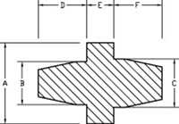 | N.° de artículo | Dim A (pulg.) | Dim B (pulg.) | Dim C (pulg.) | Dim D (pulg.) | Dim E (pulg.) | Dim F (pulg.) | Color | Cantidad por bolsa | |