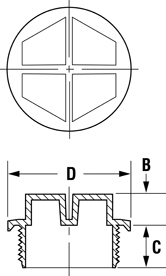 | N.° de artículo | Según el tamaño de la rosca métrica del tapón | B Dim (mm) | C Dim (mm) | D Dim (mm) | |
