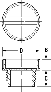 N.° de artículoSegún el tamaño de la rosca métrica del tapónB Dim (mm)C Dim (mm)D Dim (mm)
