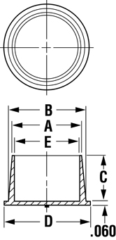 | N.° de artículo | Para ajustarse al tamaño de la rosca NPT (pulg.) | Dim A (pulg.) | Dim B (pulg.) | Dim C (pulg.) | Dim D (pulg.) | Dim E (pulg.) | |